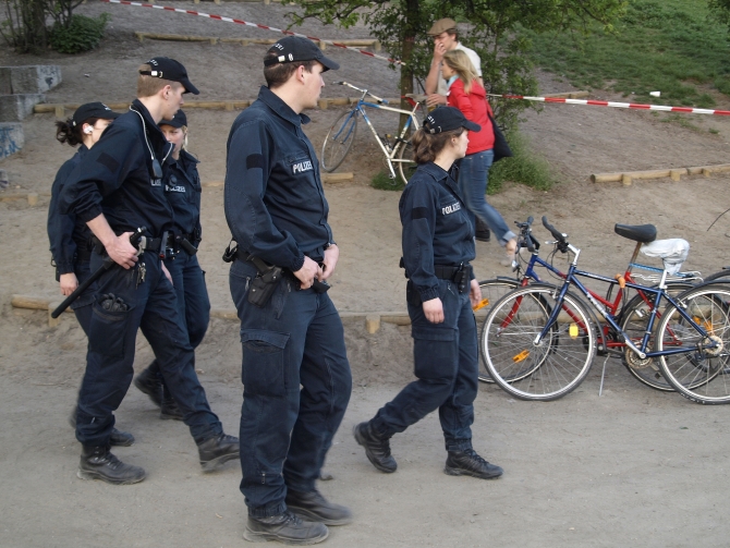 2. Ein Polizeieinsatz ist nicht erst dann als überzogen zu bezeichnen, wenn die Einsatzkräfte mit dem Knüppeln nicht mehr aufhören können. Wenn – wie hier – anlasslos eine solche Machtdemonstration inszeniert wird, dann trägt sie zwangsläufig einen provokatorischen Charakter und erscheint mir schon deshalb unverhältnismäßig. Zur Erinnerung: Der Dauermarsch jener bewaffneten, ortsfremden und noch sehr jungen Beamten erfolgte auf einem Areal, das quasi hermetisch abgeriegelt war und nur betreten werden konnte, wenn man an den wenigen Eingängen seine Taschen öffnete. Und im Park selbst war nicht einmal der Hauch einer aggressiven Stimmung zu konstatieren.
