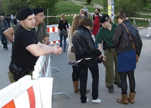 zu einem Dialog zwischen einem Besucher und einem Angehörigen des „Anti Konflikt Teams“ der Polizei.