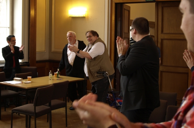 Es gibt Menschen, denen würde man sein letztes Hemd geben. Alexander Götz, Pankower SPD-Vorsitzender, beließ seine Oberbekleidung zwar am Körper, aber für Manfred „Manne“ Moldenhauer trennte er sich von der letzten Flasche seines Hochzeitssektes. Der Grund: Nach 22 Jahren Dienst als Geschäftschäftsführer der SPD von Pankow ging Manne in Pension. Manfred Moldenhauer ist ein Pankower Sozialdemokrat der ersten Stunde: Bereits 1989/90 war er beim Aufbau der Pankower SPD mit dabei. Doch er war nicht bloß Geschäftsführer, Manne war und ist ein Original, um das sich etliche Anekdoten ranken. Und die meisten davon sind wohl wahr…