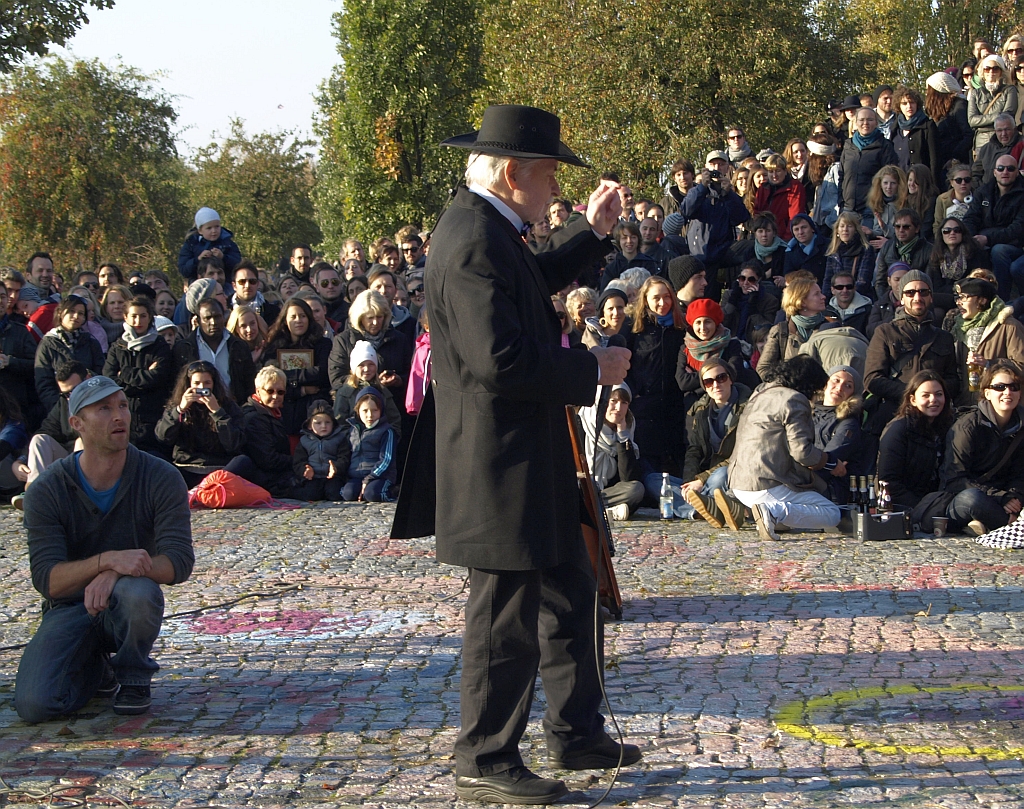 Joe Hatchiban darf ab Sonntag dem 17. Juni die Mauerparkbesucher wieder jede Woche zum Singen animieren. Wie Stadtrat Jens-Holger Kirchner mitteilte, wurde die vom Bezirksamt auferlegte Beschränkung auf lediglich zwölf Karaoke-Veranstaltungen für dieses Jahr vom Bezirksamt zurückgenommen.