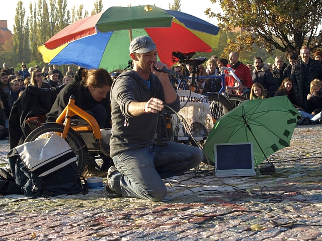 Im April hatte der Bezirksstadtrat für Stadtentwicklung verkündet, dass der Kanadier seine seit 2009 laufende Show, die mittlerweile zu einem Markenzeichen des Mauerparks geworden ist, nur noch alle zwei Wochen im Amphitheater zelebrieren darf. Zudem wurde festgelegt, dass Joe Hatchiban für die Nutzung des Areals eine Jahresgebühr von 1.500 Euro