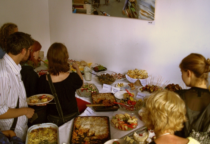 Natürlich war auch wieder ein opulentes Buffet aufgebaut – schließlich heißt die Veranstaltung ja Kulturbrunch. Wer bereits Zubereitetes verschmähte und statt dessen lieber selbst etwas kreieren wollte, für den hielt Koch-Abenteurer Alexander Sommerfeldt Zutaten und Kochutensilien bereit.