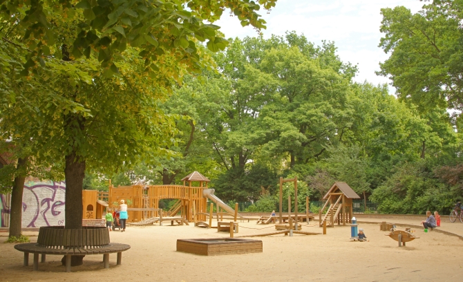 Der Park-Platz ist nicht nur zum Spielen ideal. Auch dem Kindesalter Entwachsene mögen ihn. Und manche kommen von weit her. Zum Beispiel aus Oberschöneweide.