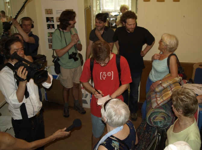 Die jungen Helfer hatte Doris Syrbe bei der Demonstration im April kennengelernt.Nun waren sie hier, um die betagten Besetzerinnen und Besetzer zu unterstützen.