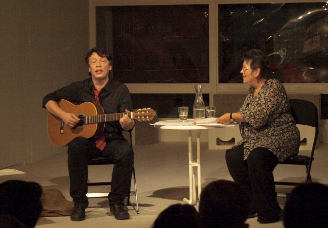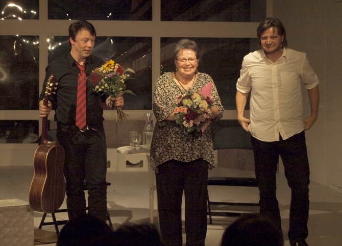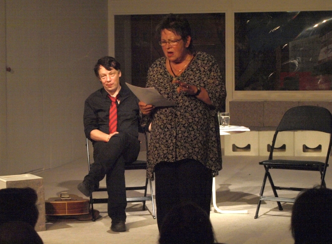 Walfriede Schmitt und Karsten Troyke traten mit ihrem Programm „Dass ich nicht vergesse, Ihnen zu erzählen …“ auf – einer Abfolge von jiddischen Anekdoten und Witzen (Schmitt) sowie jiddischen Volksliedern, Chansons von Georg Kreisler…
