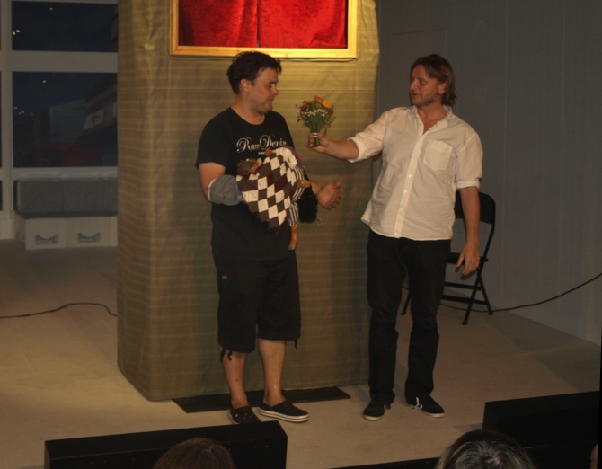 Im zweiten Teil des Programm war – wieder einmal – „Prenzlkasper“ Christian Bahrmann zu Gast, der diesmal seine ganz eigene, saukomische Version von „Kasper und der Teufel“ zum Besten gab.