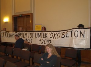 Januar 2011 einen positiven Bauvorbescheid an die Investoren ausgegeben hatte, formierte sich ein weit über die Kleingärtner hinausgehender Protest.