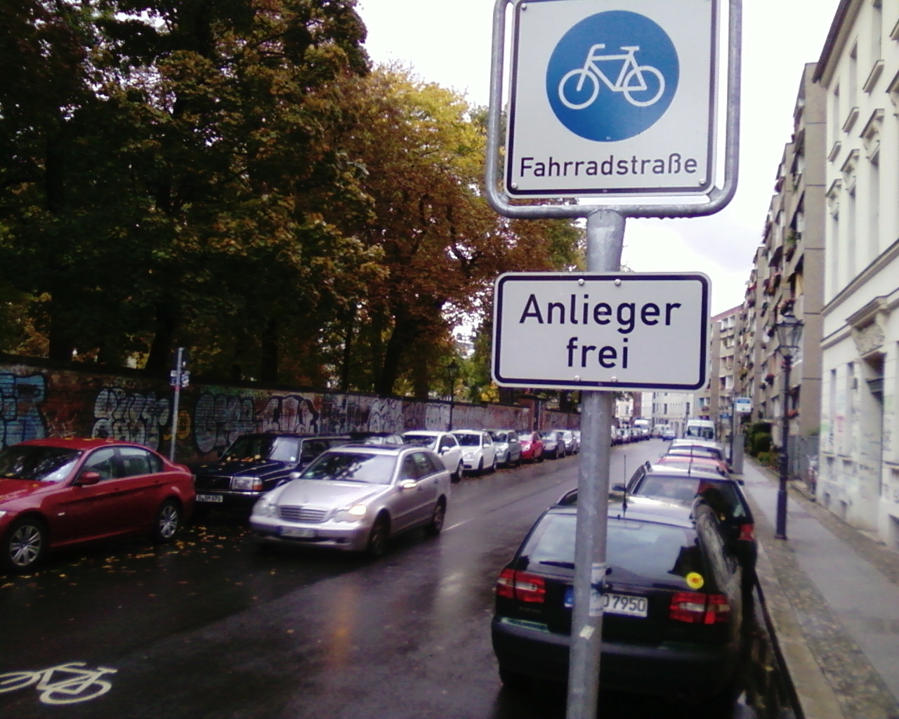 Die Linienstraße, die vom Rosa-Luxemburg-Platz bis zum Oranienburger Tor führt, wurde bereits im August 2008 zur Fahrradstraße erklärt. Allerdings ist sie weiterhin für „Anlieger“-PKW geöffnet – aber ob all die Kraftwagen, die durch die Linienstraße tuckern, tatsächlich Anliegern gehören, darf bezweifelt werden – kontrolliert hat das wohl noch niemand. Frei für „Anlieger“ soll auch die Strecke Choriner/Gormannstraße sein. Was wohl bedeutet: Keine wirkliche Fahrradstraße – aber immerhin eine Art verkehrsberuhigte Zone.