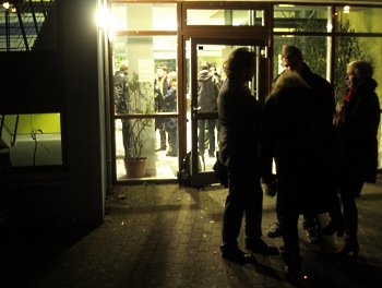 Doch im Eingangsbereich vor dem Haus und innen drin hewrrscht ein für diese Zeit ungewöhnlicher Betrieb. Fünfzehn, sechzehn Leute stehen da herum, einige von ihnen haben technisches Gerät dabei: TV-Kameras und Mikrofone. Es ist ein Fernsehteam von RTL – die anderen Personen sind die ehemaligen Pächter jenes Teils der Kleingartenanlage