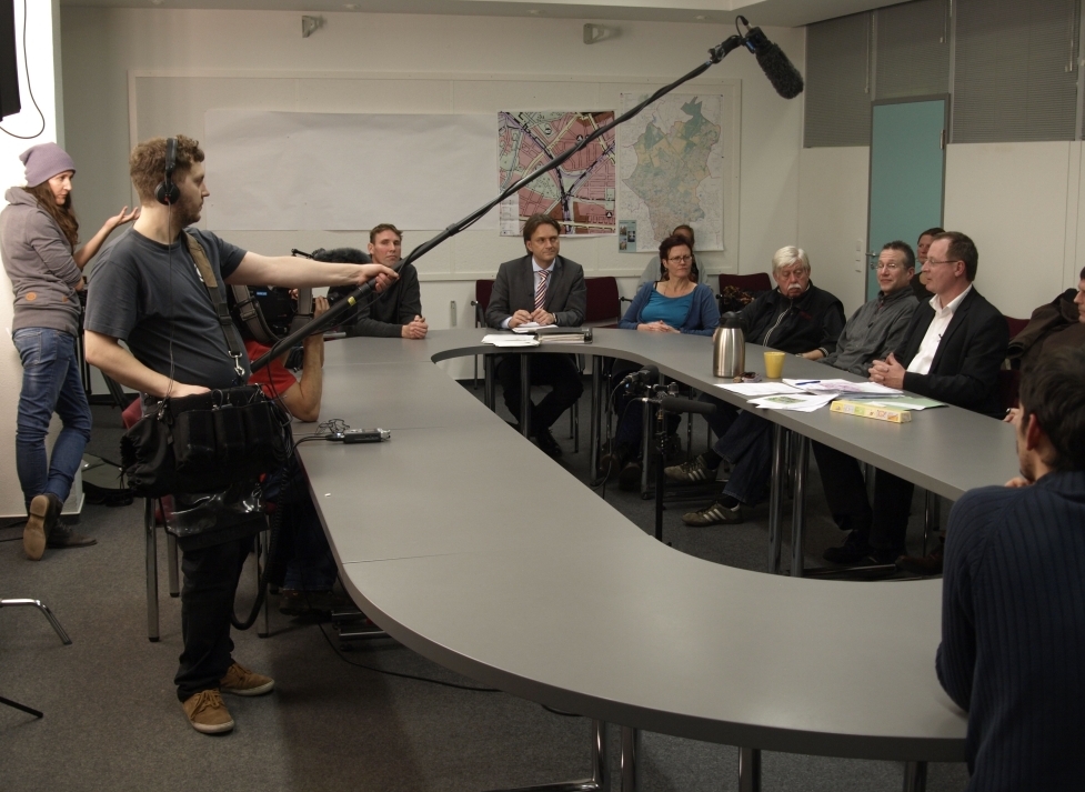 Auf den Gängen des Dienstgebäudes und im Konferenzsaal wurden ein paar Schnittszenen gedreht und einige O-Töne aufgenommen, danach begaben sich alle in einen Konferenz-