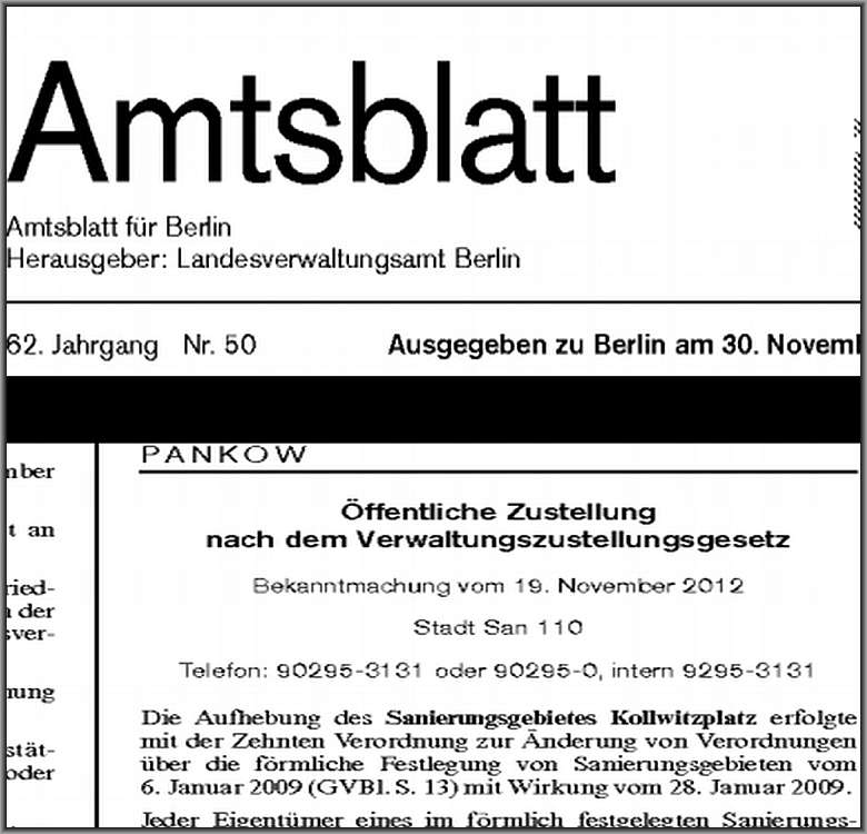 Dazu sind im Amtsblatt von Berlin alle Namen und die letzten bekannten Adressen der Unauffindbaren veröffentlicht worden. Damit gelten die Bescheide rechtlich als zugestellt.