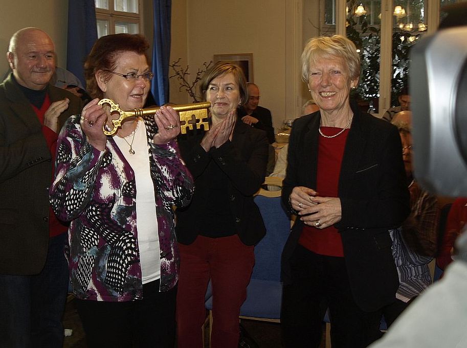 „Ich bin eine glückliche Frau, weil wir heute hier zusammen sein können und dürfen, und ich danke allen, die mit uns gekämpft haben.“ sagte Doris Syrbe und strahlte über das ganze Gesicht. Die 72jährige Seniorin war war Vorsitzende des Klubrates der Begegnungsstätte, dann führte sie die Besetzung der vom Bezirksamt geschlossenen Einrichtung an und steht nun dem „Förderverein Stille Straße 10“ vor. Nachdem kurz vor Weihnachten der Bezirk als Eigentümer der Immobilie und der Landesverband Berlin der Volkssolidarität einen einjährigen Nutzungsvertrag unterschrieben hatten, wurden Haus und Grundstück nun an den Förderverein übergeben.