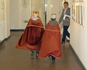 Sie waren etwas spät dran, die Majestäten aus dem Morgenlande. Und also schritten sie nicht etwa würdevoll zum Oberhaupte des Bezirkes daher, sondern stürmten geradezu durch die Gänge des Pankower Rathauses.