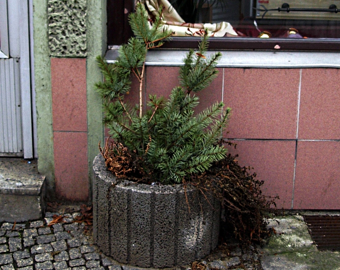 Als auch eine Woche nach dem „Schwarzen 25.“ keine Konsolidierung des Nadelbaummarktes in Sicht war, kam es zu den ersten Prenzlauer Berger Fensterstürzen. Zwar sind bisher nur Bäume, nicht aber deren Halter unter den Opfern – doch auch dies ist schon erschütternd genug.