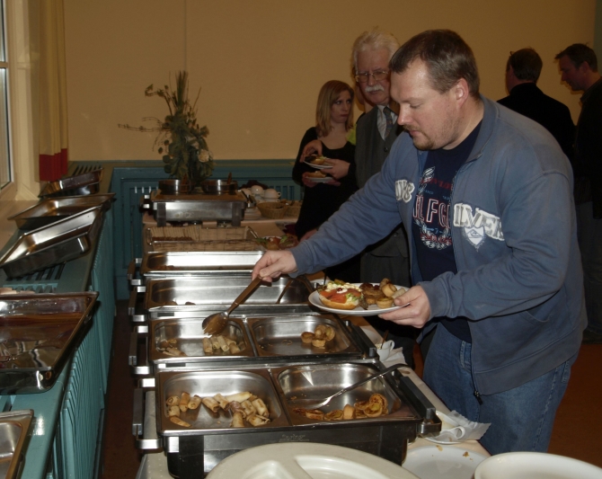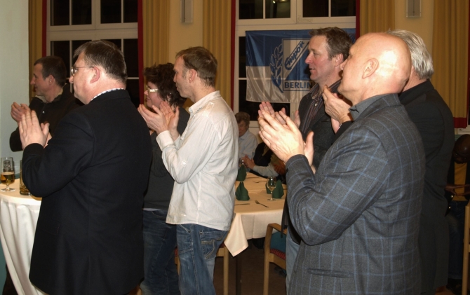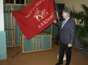 Zum Neujahrsempfang hatte Hans Gach die Fahne mitgebracht, um auf die Tradition der Sportbewegung in Prenzlauer Berg hinzuweisen. Denn der SV Empor versteht sich ja vor allem als ein Kiezverein.
