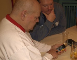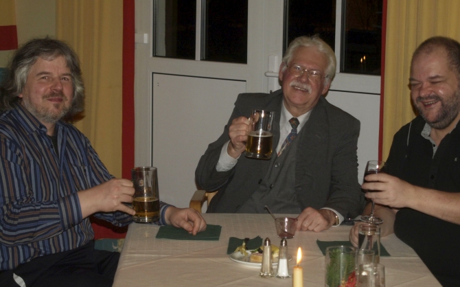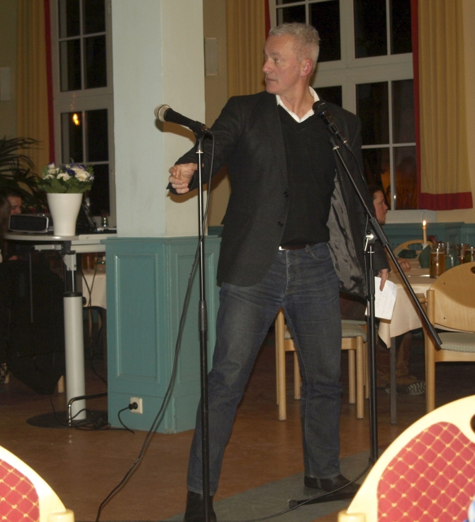 Auch schon fast eine historische Legende ist Rainer “Hardy” Hartpeng, der Mannschaftsleiter des Berlin-Liga-Fußballteams von Empor Berlin. Bei ihm schien sich an diesem Abend die allgemein verbreitete Erkenntnis zu bestätigen, dass der Mensch als solcher mit zunehmendem Alter verstärkt gewisse Verhaltensweisen aus frühen Kindertagen reaktiviert.