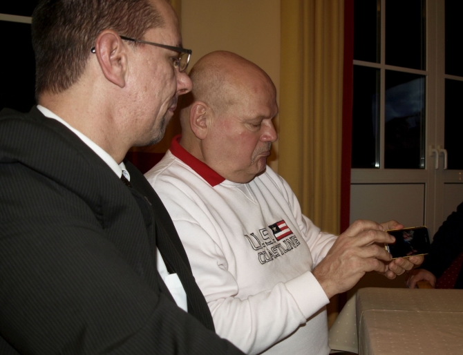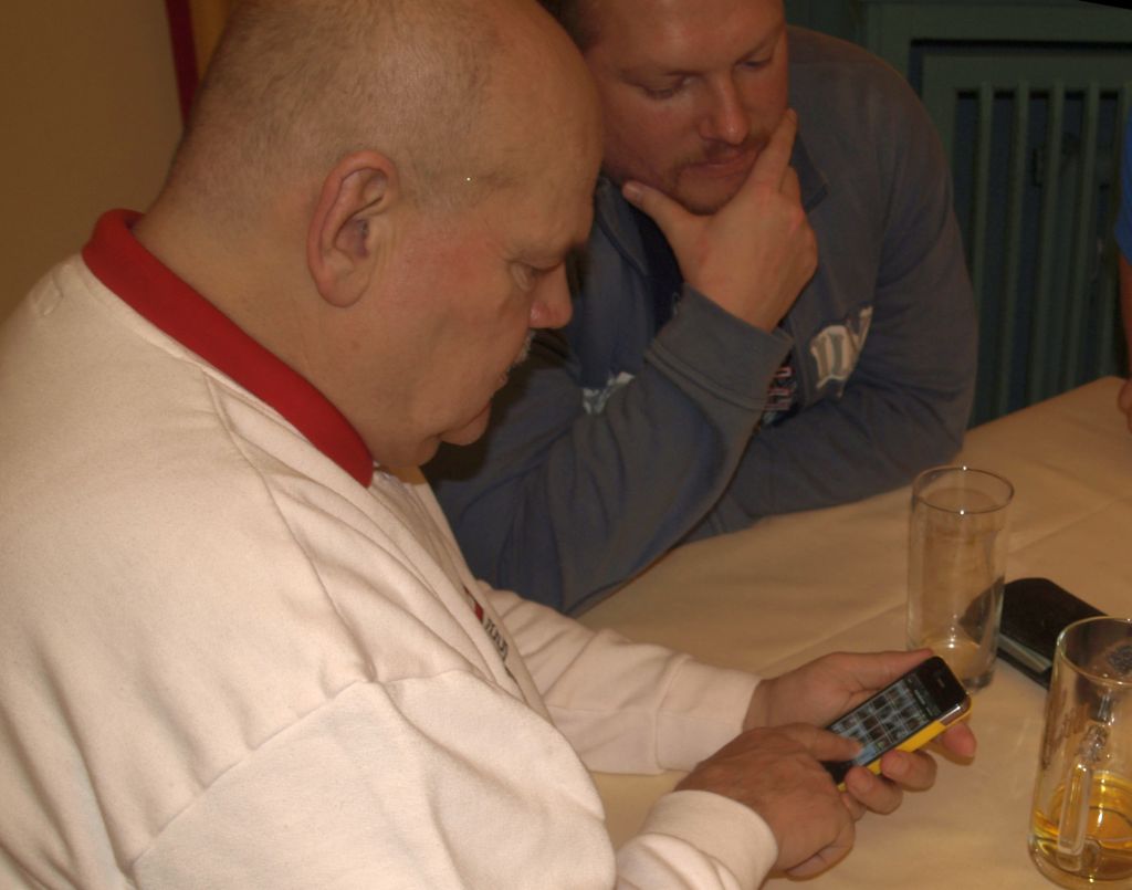 Bei Hardy, der im vergangenen Jahr das gesetzliche Pensionsalter erreicht hatte, war zumindest an diesem Abend ein gewisser kindlicher Spieltrieb nicht zu übersehen: Fast ununterbrochen und mit stetig wachsender Begeisterung daddelte er auf einem Smartphone herum, ohne sich groß von dem stören zu lassen, was um ihn herum so ablief.