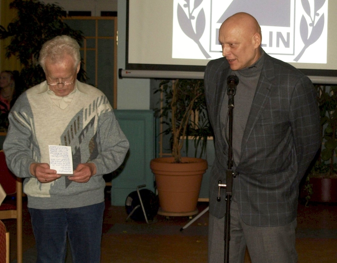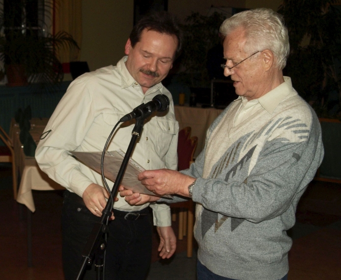 So war es denn auch kein Fußballer, der dem Neujahrsempfang auch des Vereins mit der „Ehrennadel des SV Empor in Gold“ geehrt wurde: Frank Kempinsky (links im Bild mit Vereins-Vorsitzenden Manfred Moritz), seit 1984 Mitglied in der Schach-Abteilung des Sportvereins und seit 1993 Meister der Internationalen Schachföderation FIDE, erhielt die Auszeichnung für seine Nachwuchsarbeit im Verein. Dank seiner ehrenamtlichen Engagements wurde Empors Abteilung Schach Stützpunktverein der Initiative „Integration durch Sport“.