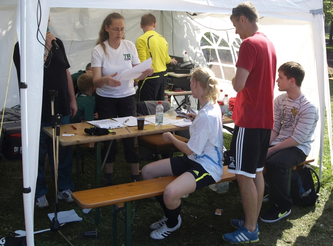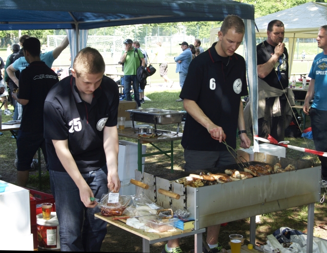 001 Händen von Marika Cseri lag, bei der Umsetzung war der gesamte Verein dabei – von Sonnabendfrüh bis Montagabend: Beim Auf- und Abbau der Stände und Zelte, am Grill und am Getränkewagen; bei der Betreuung der Mannschaften, bei der Auswertung der Spiele…
