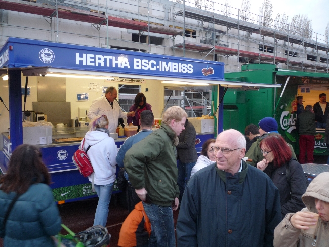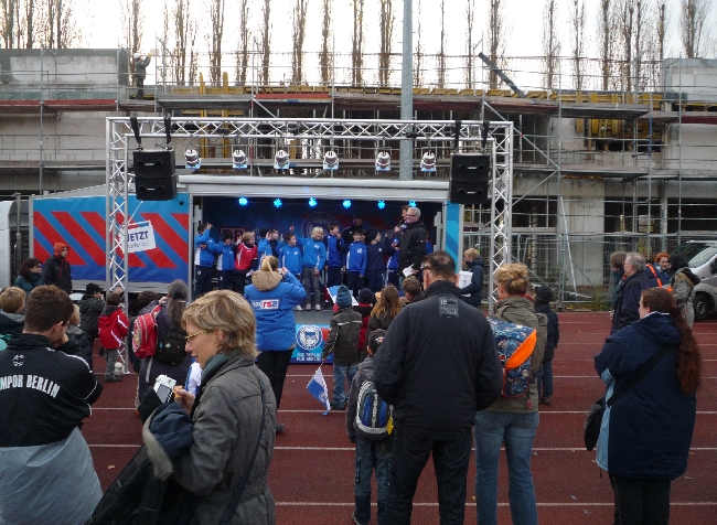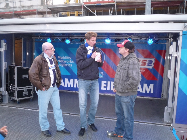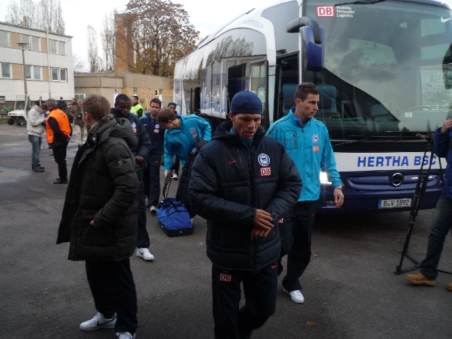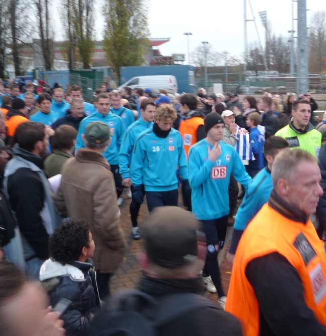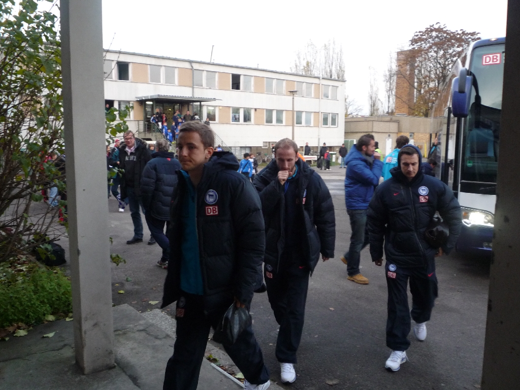 Und während sich die Hertha-Stars erst einmal in den Vereinsräumen „akklimatisierten“, lief draußen bereits ein kleines Hertha-Volksfest ab.
