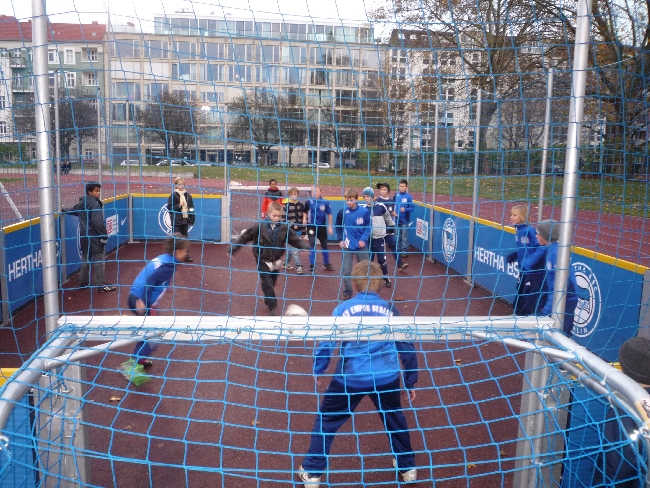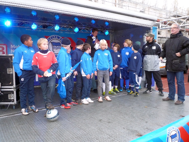 Donnerstag, 15.20 Uhr, Friedrich-Ludwig-Jahn-Sportpark: Ein großer blauer Bus fährt auf das Gelände und hält vor dem altehrwürdigen „Steinhaus“: Die Spieler des Fußball-Bundeszweitligisten Hertha BSC machen an diesem Tag Station in Prenzlauer Berg beim SC Empor Berlin. Nachdem die Herthaner auf ihrer „Kieztour“ vor sechs Wochen bei Sparta Lichtenberg Station machten, war nun der Verein aus der Cantianstraße an der Reihe.