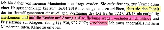 Stattdessen erreichte mich ein Schreiben, in dem ich aufgefordert wurde, die von Mindrup erwirkte Zensur als endgültig anzuerkennen und darüber hinaus ausdrücklich „auf die Rechte auf Antrag auf Aufhebung wegen veränderter Umstände“ zu verzichten.