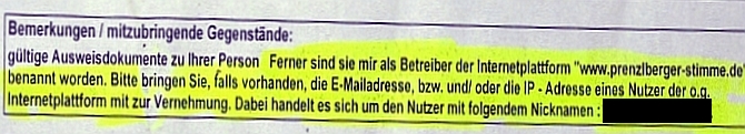 Im Zuge der polizeilichen Ermittlungen gegen die angeblich „übel nachredenden“ Unbekannten erhielt ich von der Polizei eine Vorladung zu Zeugenvernehmung.