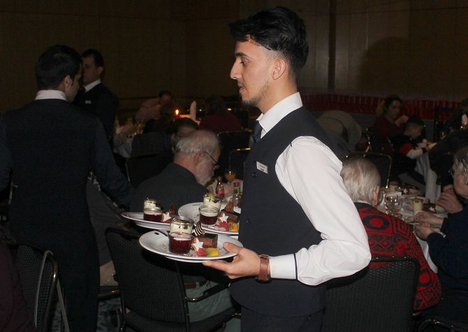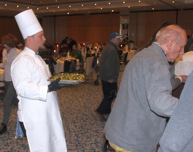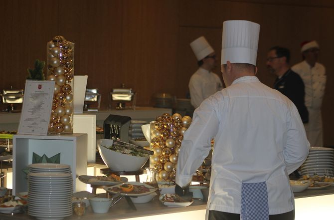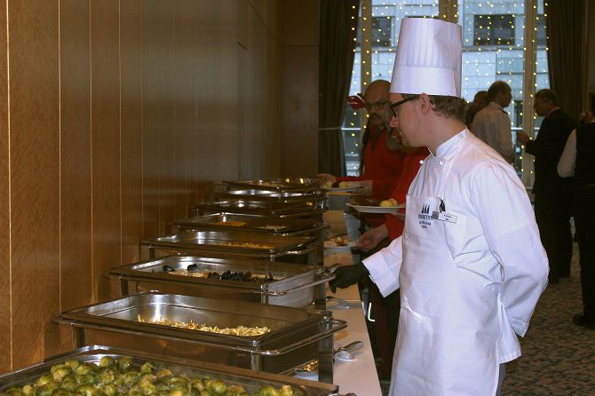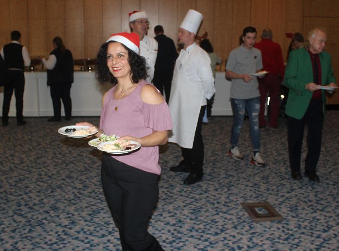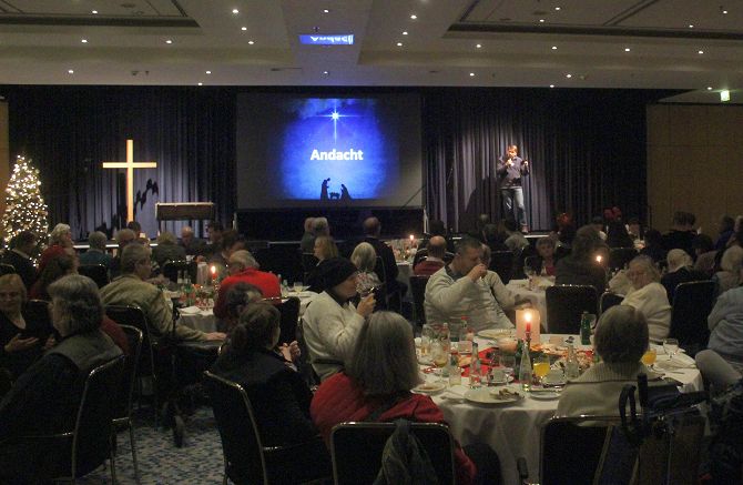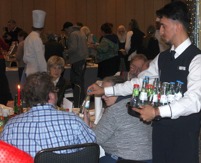 Möglich wurde das auch in diesem Jahr wieder, weil Hoteldirektor Roberto Klimsch auch diesmal wieder nicht nur einen Saal zur Verfügung stellte, sondern auf Kosten des Hauses für jeden der Gäste das Weihnachtsmenü des Hotels servieren ließ.