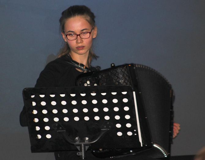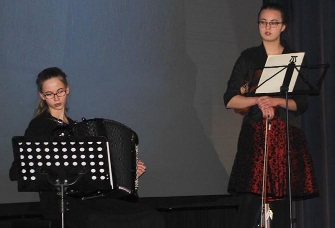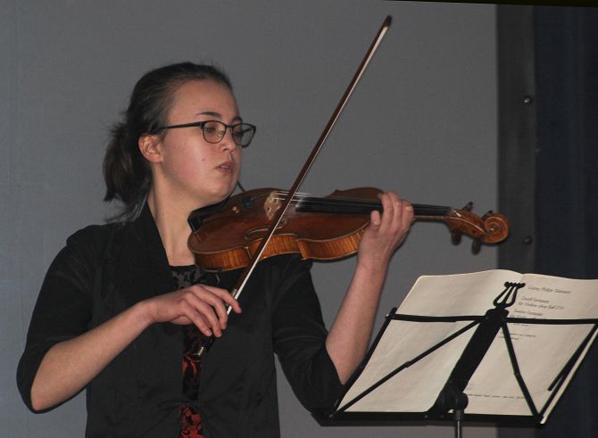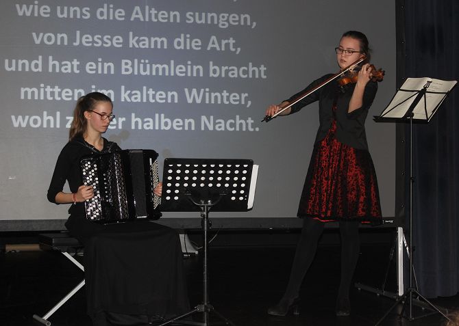 Diesmal spielten die Geigerin Lissa Carnarius und die Akkordeonistin Noga Baake Stücke von Johann Sebastian Bach, Georg Philipp Telemann und dem deutsch-franösichen Komponisten Jean-Adam Guilain.
