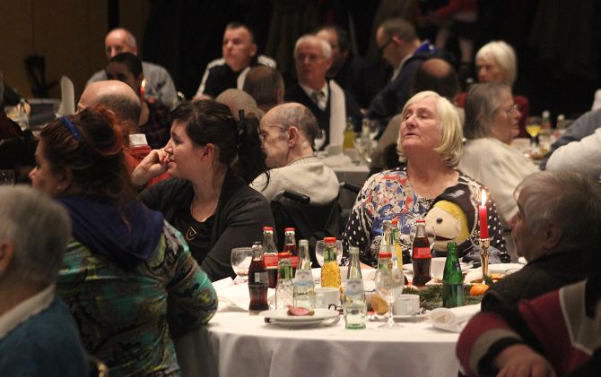 Bereits zum zwölften Mal kamen 150 bedürftige Menschen in das Hotel Maritim proArte in der Friedrichstraße, um einen heiteren und besinnlichen Heiligabend zu erleben.