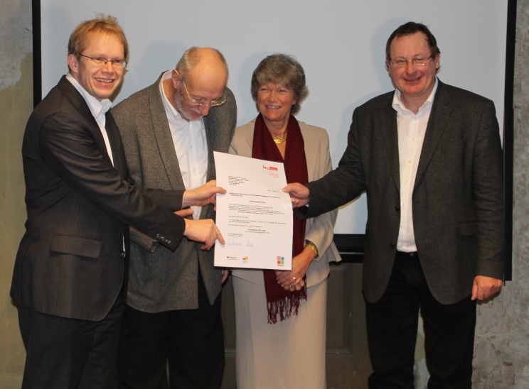 Bei der offiziellen Übergabe des Bewilligungsbescheides in Höhe von 970.000 Euro durch Staatssekretär Ephraim Gothe und Bezirksstadtrat Jens Holger Kirchner, gaben sich Barbara und Hans-Dieter Jaeschke zuversichtlich, den Umbau des Stadtbades in spätestens zwei Jahren abgeschlossen zu haben.