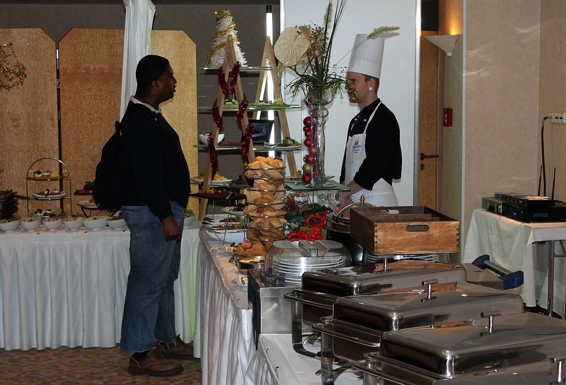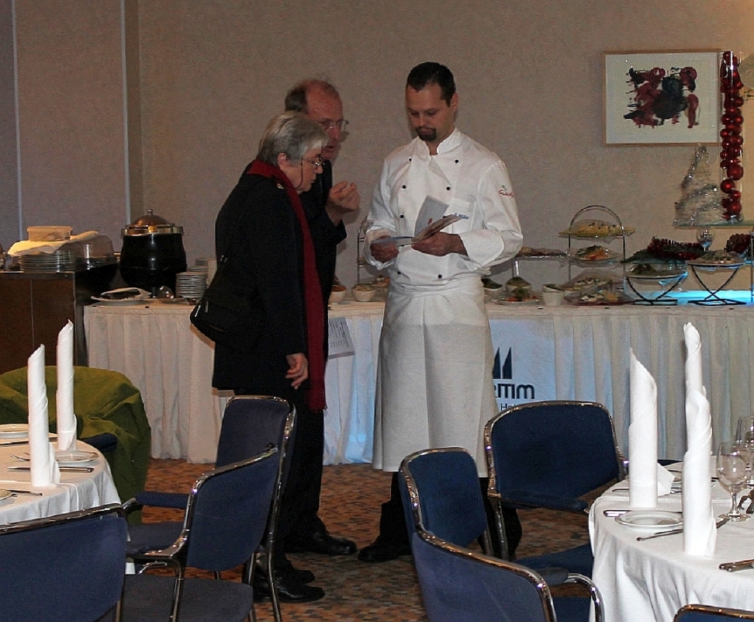 Seitdem stellt das Hotel nicht nur den Raum für die Feier zur Verfügung, sondern sorgt auch für das Weihnachtsmahl. Und das war nicht nur üppig, sondern in jeder Hinsicht erlesen.