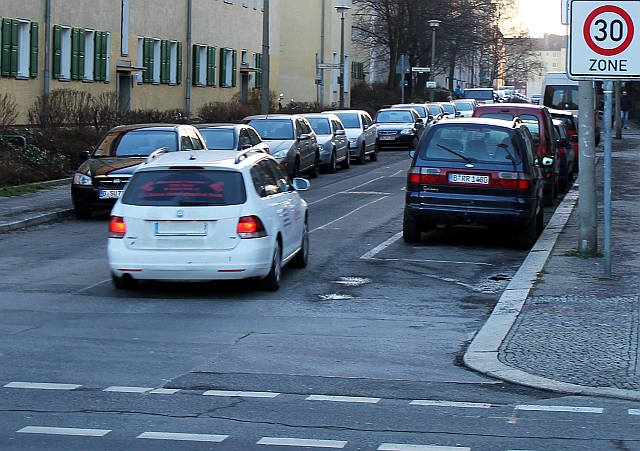 Da aber die sowieso nicht ausladend breite Sültstraße beidseitig mit parkenden Autos belegt ist, wird es bei Gegenverkehr für die Wagenlenker problematisch, aneinander vorbeizukommen. Um solch unliebsamen Treffen vorzubeugen, treten viele “Schleichwegfahrer” mal kurz kräftig auf die Tube – bloß schnell durch hier!