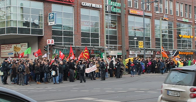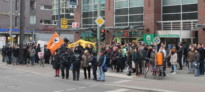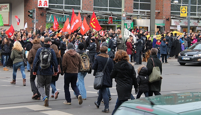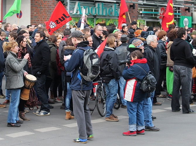 Doch 500 Meter vor der Breite Straße stoppte die Polizei den auf rund 100 Teilnehmer angewachsenen Zug.