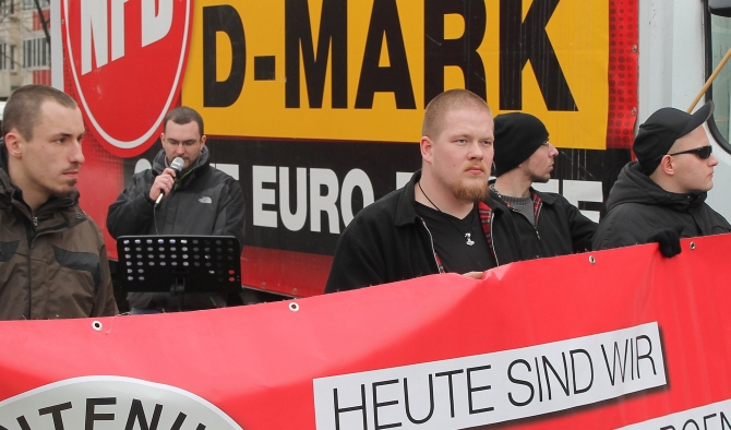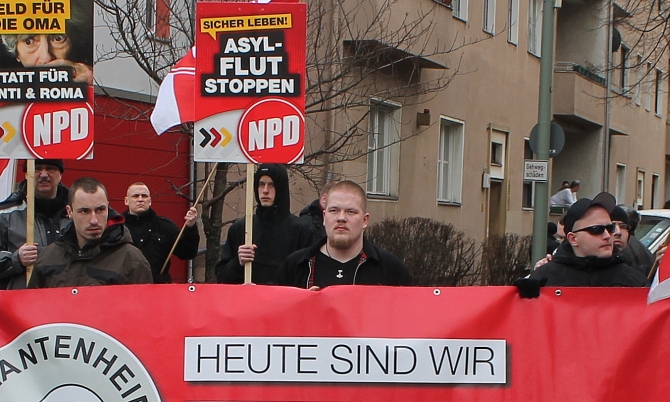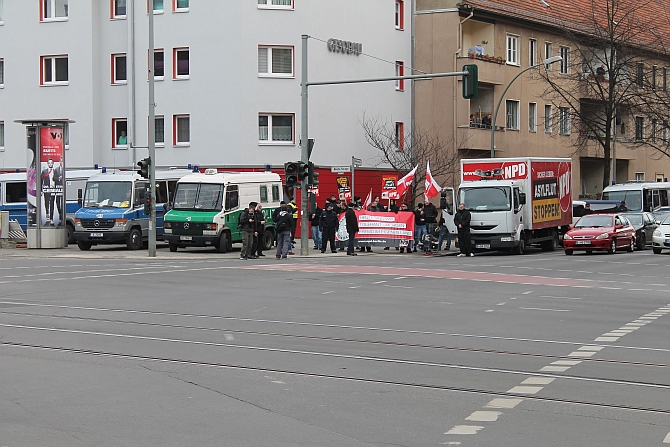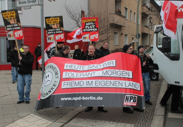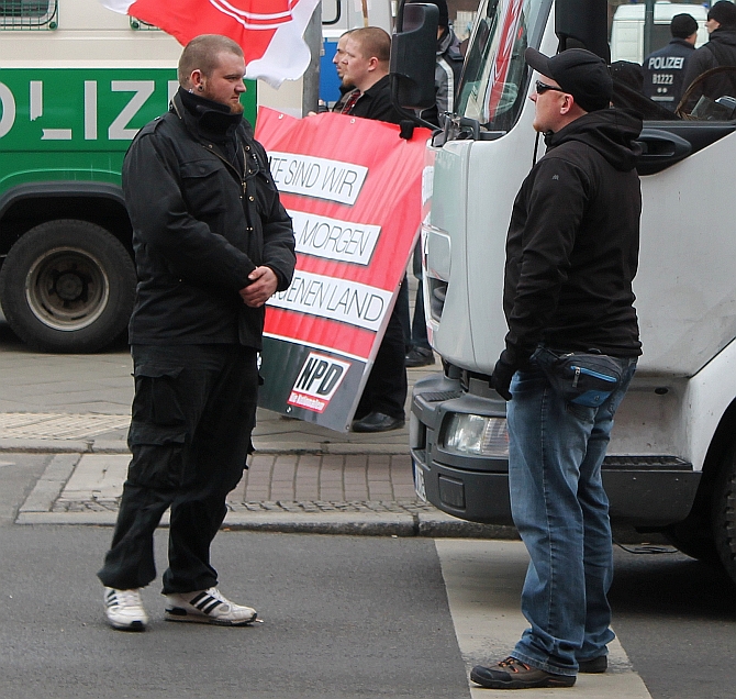 mindest eine halbwegs intelligente Demagogie erhofft haben sollte, wurde bitter enttäuscht. Der Berliner NPD-Chef Sebastian Schmidtke sowie ein weiterer Redner brachten lediglich die alten, durchgekauten Sprüche zum Besten, die auch nach der hundertsten Wiederholung nicht wahrer wurden.