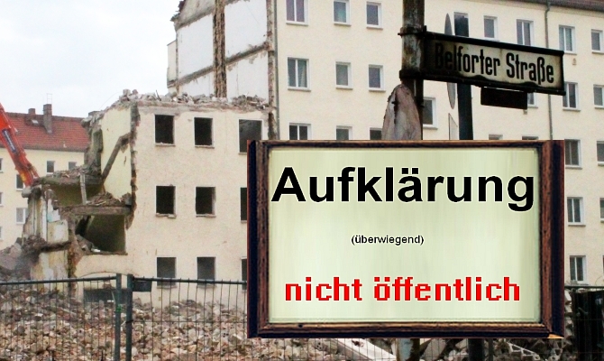 Die Zerstörung preiswerten Wohnraums im Karree Belforter Straße ist nicht nur Zeugnis der Geldgier des Grundstückseigentümers, sondern auch Beleg politischen Versagens. Die Bezirksverordnetenversammlung wollte der Sache auf den Grund gehen und setzte zur Aufklärung der Vorgänge extra einen Ausschuss ein. Doch der tagt weitgehend geheim.