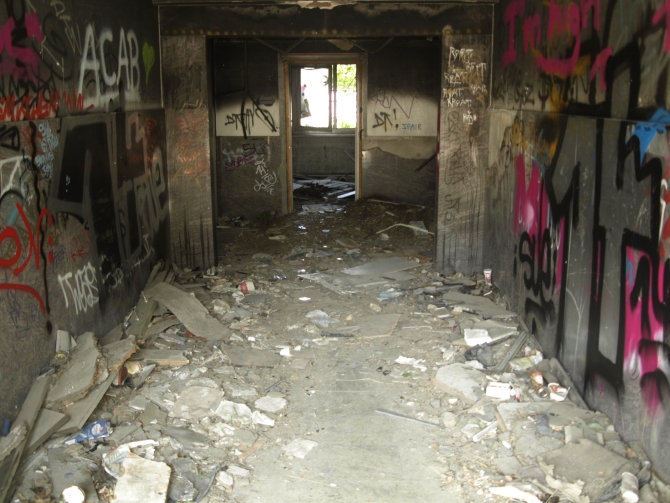 Falls das Gelände einmal bebaut werden sollte, so der Eigentümer, würde die Ruine ja sowieso verschwinden. Aber möglicherweise könnte man das Gebäude ja auch schon vorherabreißen.