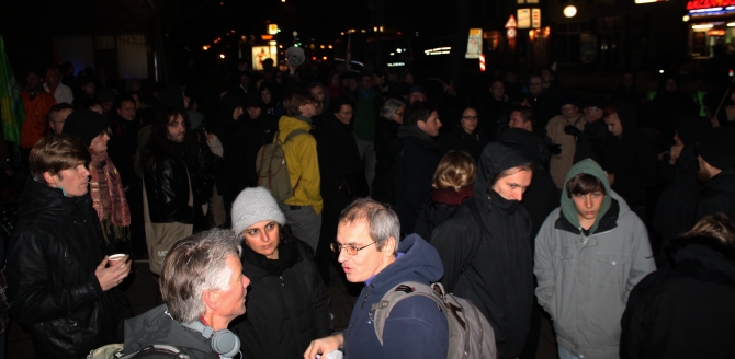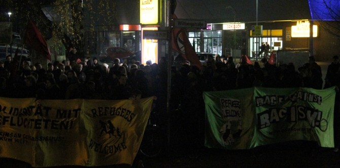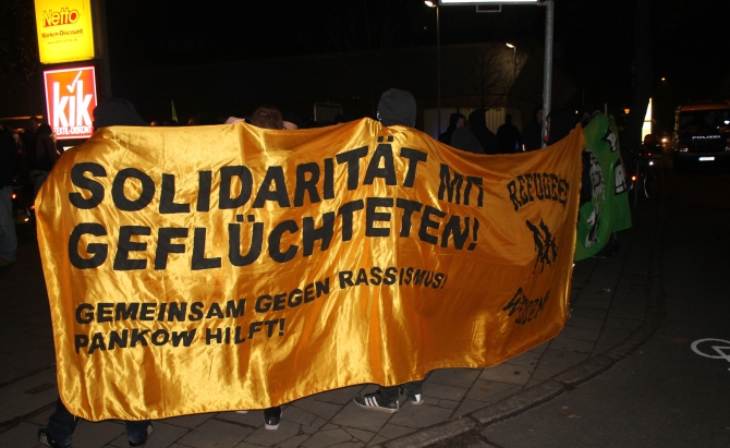 Fast zeitgleich fand in Buch eine von der NPD angeführte Demonstration gegen das vom Senat geplante Containerdorf für Flüchtlinge statt. Die Polizei hatte die Routen beider Demonstrationszüge so gelegt, dass en Aufeinandertreffen beider Gruppen vermieden wurde.
