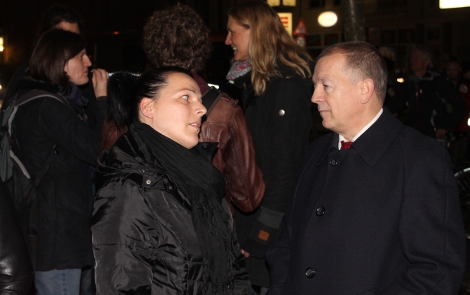 Auf einer Kundgebung zu Beginn der Verantaltung vor dem S-Bahnhof sprach unter anderem der SPD-Abgeordnete Rainer-Michael Lehmann, der in der Vergangenenheit immer wieder Angriffen Rechtsradikaler in Buch ausgesetzt war.
