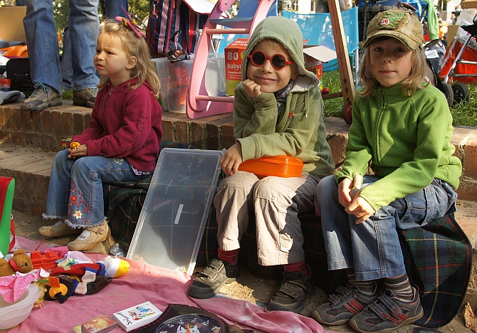 Sondern: Neben Eltern, die auf dem Markt die zu klein gewordenen Klamotten ihrer Sprösslinge anbieten, verkaufen hier vor allem Kinder das, von dem sie meinen sich trennen zu können. Beziehungsweise von dem Vati und Mutti meinen, sie sollten sich endlich mal davon trennen.