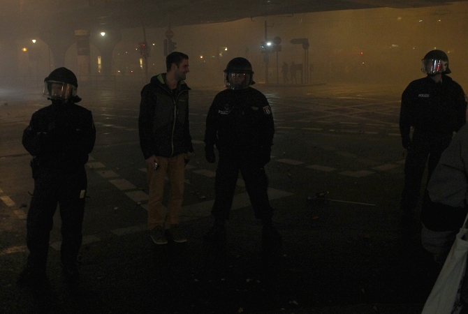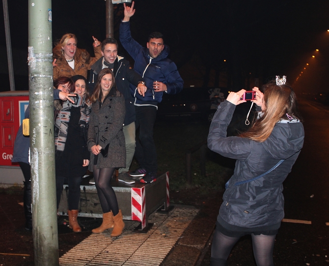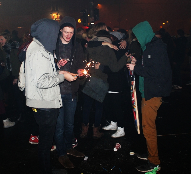 Haupttreffpunkt aller Prenzlauer Berger Open-Air-Partywütigen war auch diesmal wieder die Kreuzung Schönhauser Allee/Pappelallee/ Eberswalder Straße. Da versammelten sich rund als 1.000 Leute, um dem alten Jahr mit Feuerwerkskörpern und lauten Rufen den rest zu geben.