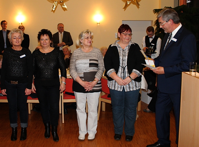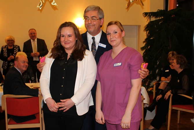 Eigentlich ist das ja auch kein Wunder: Pflegeberufe sind immernoch eine Frauendomäne, und so waren die zum neuen Jahr für ihre lange Betriebstreue Geehrten – 35 Jahre war der Rekord des Abends! – allesamt Frauen. Ebenso, wie die neuen Gesichter, die am Beginn ihres Berufslebens stehen, die Mitarbeitervertreterinnen… .