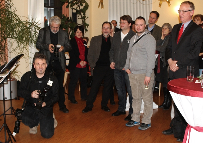 Als ranghöchste anwesende politische Persönlichkeit nahm Bundestagsvizepräsidentin Petra Pau erst das Wort und danach Aufstellung an der starken Schulter des Stiftungs-Chefs.