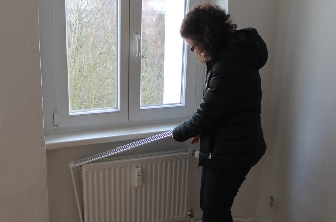 Hinter der Brandwand hat Gudrun Wollnik ihr Zuhause. Beziehungsweise sollte dort längst wieder ihr Zuhause sein. Denn im Sommer vergangenen Jahres zog sie mit Modernisierungsbeginn in eine Ausweichwohnung und nach einigen Verzögerungen im Bauablauf erhielt sie Mitte Januar von der GESOBAU die Nachricht, dass sie nun wieder in ihre angestammte Wohnung zurückehren könne. Doch nach der Besichtigung ihres angestammten Domizils lehnte sie die Rückkehr erst einmal ab.