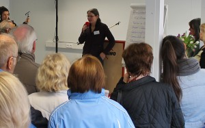 In einem Raum gleich hinter dem Eingang informierten AWO- Mitarbeiterinnen über die Räumlichkeiten, in die ab April bis zu 480 Flüchtlinge einziehen werden.
