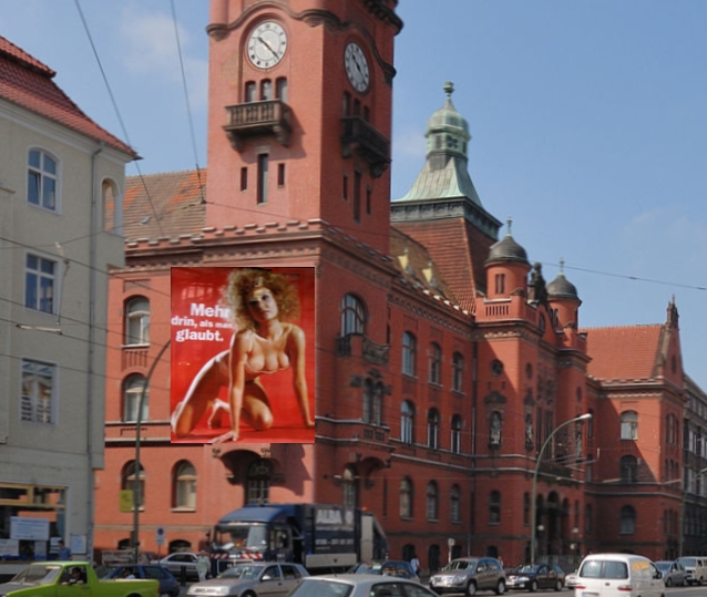 Dem Autor dieser Zeilen ist trotz intensiven Nachdenkens nicht erinnerlich, dass am Pankower Rathaus jemals großflächige Transparente mit barbusigen Damen angebracht worden wären.