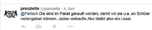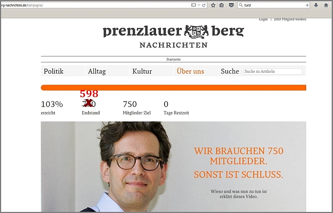 „Turi2“ bezieht sich dabei auf einen Newsletter der „Prenzlauer Berg Nachrichten“, in dem freimütig zugegeben wurde, dass die „rund 30 Förder-Mitglieder doppelt gezählt“ wurden und darüber hinaus „fünf Unternehmen insgesamt 140 Abos erworben (haben), die u.a. an Schüler verschenkt werden sollen“.