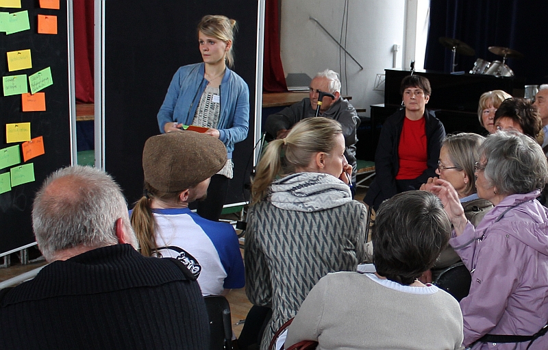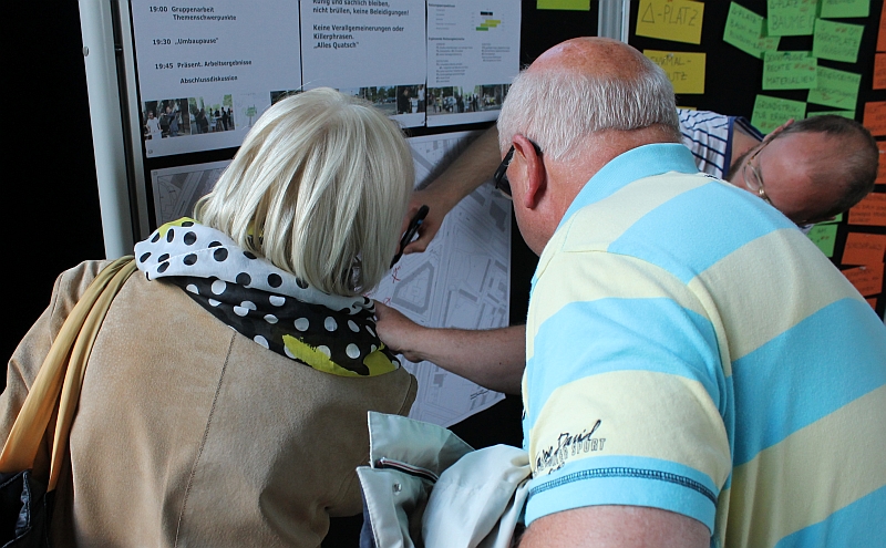 ren Anwohner den Eindruck, dass hier schon über Gestaltung entschieden wird. So kam es bei der Zusammenfassung der Ergebnisse der einzelnen Gruppen zu Unstimmigkeiten darüber, wieviel Personen denn nun für oder gegen einen Vorschlag gestimmt hätten.