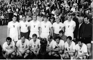Ganz rechts stehend: Alfred Zulkowski; vorn rechts neben dem Pokal Otto Fräßdorf, ganz rechts Horst Wruck (1970 nach dem DDR-Pokalsieg) – Foto: Wikipedia/Bundesarchiv