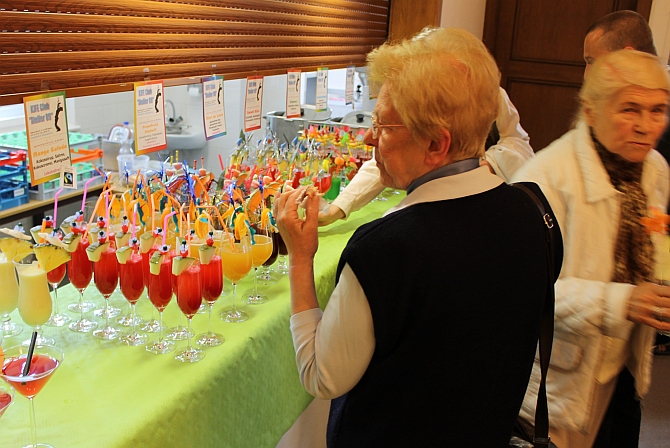 Nachdem die Tagung beendet war, wurden die Anwesenden wie in jedem Jahr zu einem kleinen Buffet geladen: Häppchen und bunte Getränke. „Alkoholfrei“ und „für Diabetiker geeignet“, wie auf den Schildchen über den Gläsern zu lesen war.